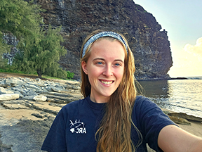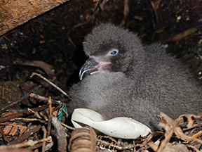 “As top predators, seabirds are sentinels of ocean ecosystems health and can be used as bioindicators of contaminants in marine food webs. My research is on plastic ingestion of ‘au’u, and endangered petrel species endemic to Hawai’i that is exposed to derelict fishing gear across its vast North Pacific foraging range. I am using ‘au’u boluses, stomach contents, and guano to describe their direct ingestion of plastic, as well as the trophic transfer of plastic via prey”