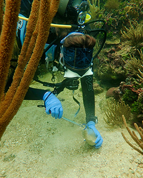 My research in Bonaire, an island in the southern Caribbean, investigates the status and health of coral reef ecosystems, including the effects of coral bleaching, on windward reefs. This study is the first to monitor these inaccessible reefs on the east coast of Bonaire in over a decade, and aims to compare reef resilience between windward and leeward reefs to better predict the effects of climate change.