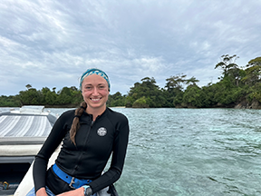 "While global action is essential to address climate change, local management decisions play a crucial role in protecting vulnerable coastal ecosystems from additional stressors. My Ph.D. research examines how human activities influence coral reef resilience in the Florida Keys National Marine Sanctuary. By understanding how different levels of local impacts and human uses affect reef community structure and health, my work will help identify strategies to strengthen coastal ecosystems against accelerating climate change and support the long-term protection of these critical habitats."
